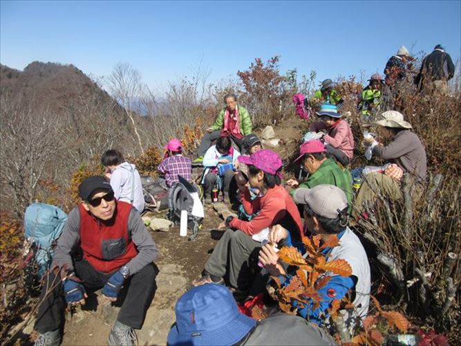 おだやかな小春日和の下で昼食を楽しむ(茅ヶ岳山頂)