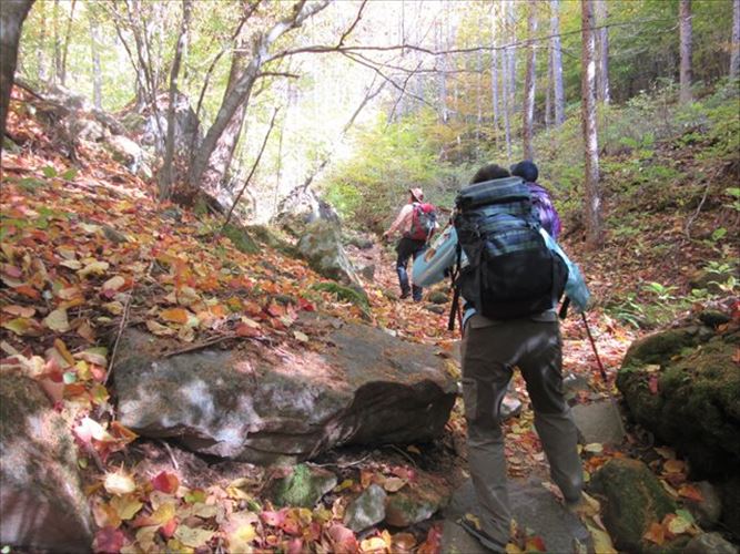 足元の岩が大きくなってきて落ち葉重なり足元注意です。
