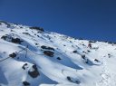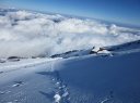 | 【コメント】 今季初の雪山。 6合目からは雪の状態が非常によくて歩きやすい。 風もなく、絶好の富士山日和であった。 アイゼンも良く効き、サクサクと登っていく。 最初は吉田大沢を直登するコースをとった。 7合目の手前で夏道に戻る。 7合目までは登っていると暑いくらいだった。他にも単独者やパーティが数人登っていた。 同行のKさんは非常に足が速く常に50mほど先を行く。どうしても追いつけない。 しかし、7合目あたりから吹き溜まりが増えて踏み抜くこともあり、歩きにくくなった。 ペースが思ったより伸びず、このままでは山頂到達は厳しい。 Kさんは吉田大沢直登コースで山頂アタックを目指すことになる。 私は夏道を行けるところまで上を目指すことにする。 しかし、富士山は山小屋が見えていてもなかなか遠い。 下は無風だったが7合目半からは風が強くなった。 標高のせいなのか、今季初の雪山のせいか息が上がる。 結局3250mの8合目の山小屋までで時間切れとなり下山時刻となる。 Kさんの姿が小さく9合目あたりに見えたが同じく撤退。 下りは登りの辛さが嘘のように楽で早い。 そして吉田大沢を真っすぐ下山したKさんは私より30分前に5合目に着いたそうだ。 5合目の駐車場についてビックリしたのは、あまりの観光客の多さ。 ほとんど海外からの観光客で大型バスがずら〜っと並んでいた。 自撮り棒で富士山と写真を撮ったり、トイレも長蛇の列。 そして16時近いのにまだ何台かの大型バスが登ってくるのにも驚いた。 登ってよし、眺めてよしの富士山の人気はさすがですね。 コメントM/S |