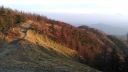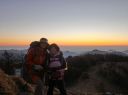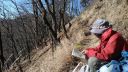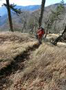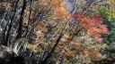 | 【期日】 2016年11月17日〜18日 【メンバー】 L:MU NK 【コースタイム】 11月17日 鴨沢9:40―所畑―堂所―マムシ岩―ブナ坂14:00―14:40奥多 摩小屋15:10―小雲取山― 雲取山避難小屋16:10 泊 11月18日 雲取山避難小屋6:10―6:15雲取山6:25―6:45雲取山荘7:00 ―大ダワ―芋ノ木ドッケ8:30ー桂谷ノ頭― 長沢山10:20―水 松山―13:00酉谷峠13:15―日向谷ノ頭―七跳―大栗山―三ツ ドッケ―15:20 一杯水避難小屋15:35―ヨコスズ尾根―東日原バス停17:45 【コメント】 高度1500m〜1700mはまだ紅葉がきれいだとの情報の下、その地点はと調べた結果、奥多摩の長沢背稜近辺に なった。どんな紅葉か楽しみにして(避難小屋泊まり自炊)の用意をして出かけた。 奥多摩駅から鴨沢までバスに乗る。 鴨沢で降り林道を登り登山道に入る。樹林帯の登山道に入ると予想通り紅葉が美しい。途中で水がどんどん出ており、 水分を補給する。マムシ岩を過ぎると七つ石小屋方面と直接ブナ坂に行く道に分かれる。私達はブナ坂方面を選ぶ。ブ ナ坂からあたりがカラマツ林となり奥多摩小屋までは気持ち良く歩ける。大きな広場のようになっているヘリポート場を 通り過ぎ、しばらく歩き奥多摩小屋についた。小屋の前でザックを下ろし、今日の夕飯の水汲みに行く。6〜10分位下 りると、豊富な水に出会った。二人で6リットル位の水を持ち小屋まで登り返す。 奥多摩小屋はひっそりと静まり物音も なく、泊り客もいない様子であった。小休止の後、本日最後の登りとなる。奥多摩小屋から今夜お世話になる雲取避難 小屋まで、一気に行くのだ。小雲取山からの後30分の登りが予想した以上にきつかった。後から来た登山者に追い抜 かれ、どんどん距離が離されていく。やっとの思いで、小屋に着くと、外で様子をうかがっていた先人が「なんだ。おばさ ん?大丈夫?」と、いたわられた。まあおばさんなんでしょうがないか。小屋の先人は男性2人、女性1人。私達を入れ て5人。北斜面に小屋が建っているせいか、ひろい小屋の中は零下何度ということで、寒かった。夕餉の支度をするの でガスを焚いたが寒い。ポトフを作り体を温めた。夕食後はすることもないので、外に出て、夜景を見たりして過ごす。夜 景がきれいだったが、1か所黒い塊のような場所が見えた。そこが昭和記念公園の森だそうだ。就寝後も寒くて起きた 。小屋備え付けの毛布をさらに2枚お借りしてかけた。11月17日 4時半起床。朝食おじや。5時半には小屋を出て出 発の予定であったが、雲取山からの日の出を見ようということで、見ていたら出発時間を大きく過ぎていた。でも温か い太陽の光が差し込むと、何とも幸せな気分となる。 今日も天気は良い。雲取山荘で水を補給。気持ちよく歩いている と、芋の木ドッケ前で鹿のグループに遭遇。可愛い顔。バンビもいた。天祖山近くに来ると、工事の車の大きな音や、「 バーン」という発破のような音と、サイレンが聞こえた。タワ尾根を過ぎ酉谷峠に着くと登山道の下60mぐらいのところ に酉谷避難小屋が見えた。この小屋はネット上では、きれいだが、小さいとのことで、もし泊れなかったらというリスクを 想定して、私達も反対周りで今回の縦走コースを決めた。機会があればいつか一度は泊まりたいと思う。 一杯水避難 小屋で休憩。小屋の中はきれいで清潔だった。小屋の中は太陽の陽を沢山ためて暖かかった。この後水場の方に下り てしまうプチ道迷いをしてしまった。20分のタイムロス。さあ急げ急げ。ここから日の落ちる時間との追いかけっこ。下 山口の駐車場まで40分足らずになった所で、完全に日が落ちた。その場所が丁度広い尾根になっており、さらに落ち 葉が一面深くつもり踏み跡が全く分からない。登山道などは勿論消えている。あちこちに、どこでも行ける雪面のよう。 ヘッデンで照らしてもどこを通ればいいのか皆目判断がつかない。UさんがGPSを取り出し確認してくれた。しばらく歩く と、下にかすかな明かりが見えた。道間違えをしていないことに、ほっとする。ビバーグにならないで良かった!! 東日 原バス停に着いた時には最終バスが既に待機していた。「まってて〜」と大声で叫んだら「あわてなくてもいいよ〜。まっ てるから」と優しい声が返ってきた。ありがたい!! 発車と共にうとうとしてしまったが車が止まったので何かなと思ったら、野生のタヌキが車の前にいるのでご覧くださいとのこと。この運転手さんはとてもサービス精神に溢れた方でした。 昭文社の地図によると一日目5時間30分、二日目9時間30分とある。2日間で15時間歩いたことになる。長沢背稜完 歩!!! 大きなザックで、良く歩きました。Uさんありがとうございました。女二人チョッピリ怖い思いもありのプチ冒険 山行でした。 記 N・K |