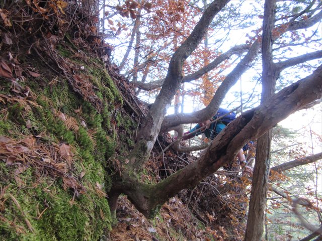 左側から回り込むが、ここもメチャメチャ厳しい、木登りのようだ