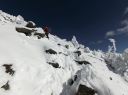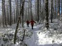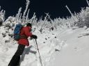 【山域:山名】 八が岳 蓼科山 【山行期日】 2016年12月15日(木)前日夜発 【メンバー】 L;R.K N.K M.U 【コースタイム】 往復車使用 女ノ神茶屋登山口8:50着―9:00発―12:45蓼科山山頂―15:20女神茶屋登山口着 【コメント】 蓼科山に行く。天候快晴。昨夜の風は収まり、絶好の登山日和。 女神茶屋付近で積雪20センチぐらい。足馴らしにはちょうど良い 雪積量だ。 雪質は新品のパウダースノー。1〜2日前に降ったばかりなのだろう。 アイゼンのみ持参。ワカンは置いていく。樹林帯の中のいつもの 熊だなチックのヤドリギ。 今年も健在だ。標高2113M地点で一度 休憩をとる。2300M地点からアイゼンをつけた。 Lは装着せず。さすがに今年初めてのアイゼンを装着した途端「重い。ずっしりと重い」 足に来る。「こんなことで今年の冬はのぼれるかな〜」と不安になる。それでも、ピッケルなし なので、重量は普段の雪山装備から比べれば楽をしている。2300m地点から急騰が続く。 後ろを振り返り振り返り登ると、そこには素晴らしい眺望が覗めた。Uさんに山の名を調べて もらう。そこから山頂に向け一直線の待ったなしの急騰が続く。やがて森林限界を越え、 岩石地帯になる。雪がまだ少ないのか、所々岩が雪の中から露出しており、アイゼンの爪を こする。アイゼンの爪がすり減るのを内心心配した。ルートは明瞭。2500m地点では直登せず、 巻くような形で、鎖の埋もれた道から蓼科山頂ヒュッテへ出てそこから蓼科山の頂上へ向かった。 頂上は360度の素晴らしい眺望で期待を裏切らないものだった。八が岳の全容が望め、 北、中央、南アルプスも見えた。 ヒュッテ脇で「お茶」するつもりで持参した、「甘酒」は、頂上直下の樹林帯の中で頂くことに した。時間の関係で、持参したコンロは使用せず、使用は次回の楽しみとすることにした。 下山時太陽の光の贈り物なのか、虹が見えた。どこまでも青空で、素晴らしいその中にほんの 少しの雲がレンズとなり、光のページエントを見ることが出来た。 下山口に到着した時は、満足感で1杯になる。 下山後の自動車道で、これまた素晴らしい 八が岳が、雪で白く浮かび上がる幻想的な姿を見ることが出来た。 ルンルン気分と、素晴らしい景色に感動した山旅であった。 (N/K記) |