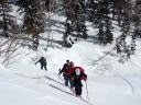 | 成城学園ヒュッテ「大極荘」、昭和10年建立 【期 日】 2016年12月30日〜2017年1月4日 【メンバー】 S.A他9名 【コースタイム】 12/30 栂の森ゲレンデ9:00−10:40成城学園ヒュッテ「太極荘」13:30−天狗原往復 −16:00ヒュッテ(泊) 12/31 出発8:30−栂の小門往復−11:00ヒュッテ(泊) 1/1 出発10:30−天狗原−12:50白馬乗鞍岳13:20−14:00天狗原−14:50ヒュッテ(泊) 1/2 出発8:30−10:10栂池自然園最奥の稜線−12:00ヒュッテ(泊) 1/3 出発11:00−天狗原往復−13:00ヒュッテ(泊) 1/4 下山10:00 【コメント】 恒例の正月、栂池山籠もり、今回も総勢10名でのヒュッテ生活と山岳スキー行でした。 昨年同様、積雪量が少なく思う存分の新雪滑走とはいかず残念でしたが、 また、2日には栂池自然園奥の稜線から船越の頭直下まで登り、 今回は日頃の運動が功を奏し、スキーの滑りもよみがえってきた感じです。 |