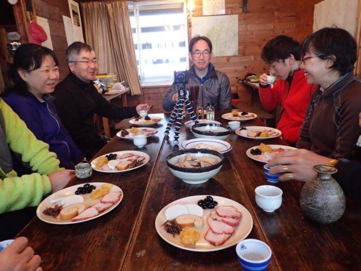 元旦のお祝い、日本酒とおせち料理で