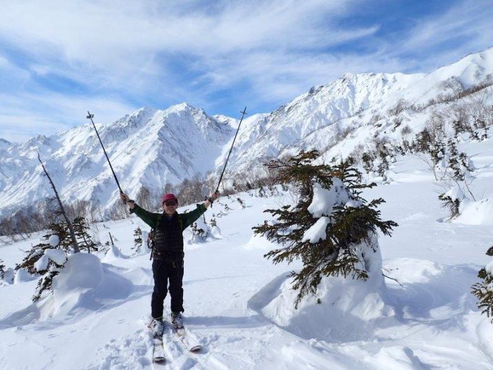 白馬三山をバックに、ここまでヒュッテから2時間半