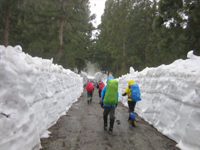 まずは除雪された林道を歩きます