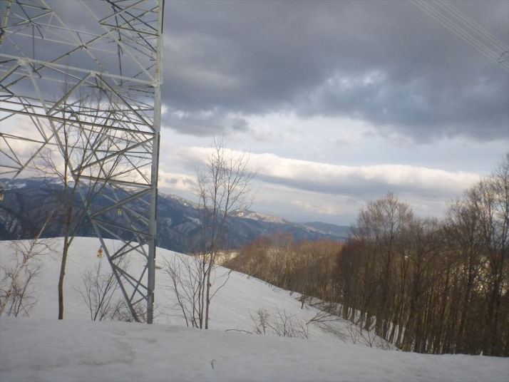 第2鉄塔の向こうには猪臥山乗鞍などの山々が次第に
