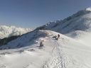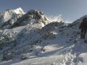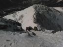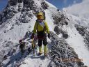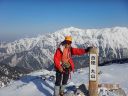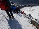 【期日】 2017年4月15日(土)〜16日(日) 【メンバー】 CL M.H(会員外) Y.S 【コースタイム】 15日 西穂高口15:48−西穂山荘着16:43(泊) 16日 西穂山荘出発6:52−丸山7:17−西穂独標8:36−西穂高口13:15 【コメント】 飯能労山のHさんと西穂独標に向かって出発した。新穂高温泉に車を停め、ロープウエーで上り、西穂高口から歩き始 めた。15日は天気が悪く雨だった。展望はなく、明日のことが不安だったが、予報は晴れなので、それを期待しながら、 合羽を着てアイゼンを着けて歩き始めた。1時間で西穂山荘に着いた。宿泊客が多くにぎやかで、若者の熱気むんむん といった感じだった。食事の後に明日に備えて、ロープワークの練習を何回もやり、消灯の9時には眠った。16日は、朝 から快晴で、北アルプスの山々が輝いていた。7時前には出発した。天気が良いので、景色が何しろきれいだった。風も 思ったほど強くなく、快適に歩けた。岩山を予想していたのに、前の日に雪が積もったので、雪の上を快調に進むことが できた。丸山で休憩をした。ここは眺めがよく、周りの景色を眺めることができた。目指すごつごつとした独標もよく見え た。心の準備をして、独標に向かい歩きはじめた。頂上直下は岩が出ていて雪も多く、急登なので、足元をよく見ながら 登った。ピッケルを利かせながら、前傾姿勢でアイゼンの前歯を雪に突きさしキックステップで登っていったら、独標に 着いた。念願の独標に立つことができ、感激の一瞬だった。その向こうにはピラミッドピーク、西穂高岳が見えたが、と てもそこまで行けるような場所ではなかったので、よく眺めてきた。下り始めが急だったので、すごく緊張した。ピッケル を深くさし、足を置く位置を確かめながら下りたが、もし踏み外したら、滑り落ちるなと思い、緊張しながらHさんの後を下 りて行った。ピッケルが利いていることを実感しながら急な場所を下りることができた。ピッケルと12本歯アイゼンがすぐ れものだということが実感できた。ロープは出さずに難所を下りることができた。その後は、同じ道を景色を楽しみなが ら下りた。何しろ天気が良くて、申し分のない登山となった。 Y/S記 |