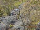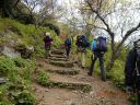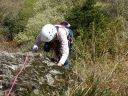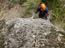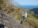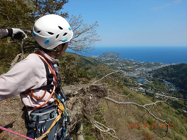 【期日】 2017年4月25日(火) 【メンバー】 CL M.T(飯能労山) Y.S 会員外4名 計6名 【コースタイム】 幕岩着10:00−クライミング開始12:05−終了15:00 【コメント】 湯河原の幕岩に初めて行った。公園に車を停め、準備をして「悟空スラブ」というところまで登っていった。途中道の分 かりにくいところもあった。着いてから準備をして練習を始めた。今回の目的はマルチピッチクライミングのやり方を覚え ることであった。 リードで登っていった人が取り付き点で自分を確保して、ロープを引き上げる操作をして、下にいるパ ートナーを引き上げる。パートナーが着いたら、リードを交替してまた取り付き点まで登り、パートナーを引き上げるとい うのを何回か繰り返した。岩登りは易しかったが、操作の仕方が難しく、教えてもらいながら何とかできた。頂上からの 眺めは海が見えて、素晴らしかった。下までは、懸垂下降で下った。一回ではロープが足りないので、途中まで下り、も う一度ロープを持ちながら無事に下山することができた。終了したのは15時だった。それからお昼ご飯を食べ、同じ道を 下山した。帰りにクライミング練習をしている人の登りを見せてもらって、帰った。実践練習ができて、有意義であった。 Y/S記 |