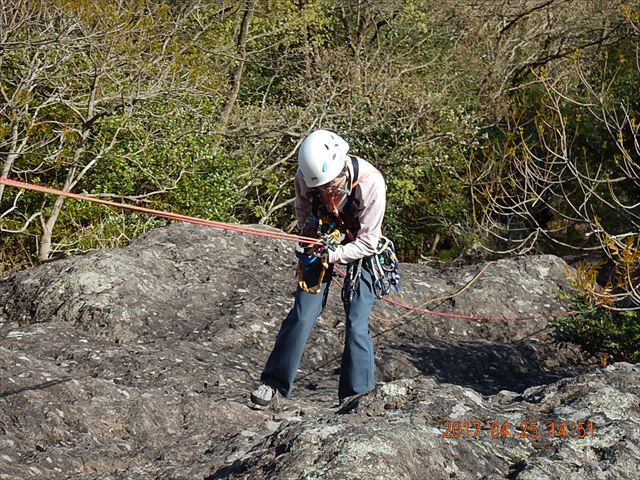 下降中です。ビレー器で確保されているので、安全です