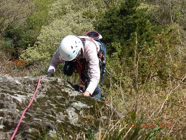 ロープで確保してもらって、登ります