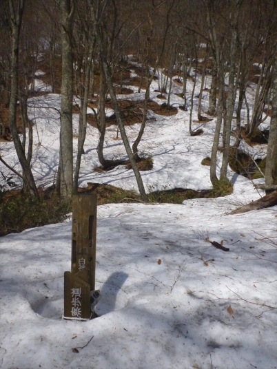 雪の埋もれた道標があるがどちらへいけばいいいのか
