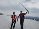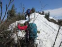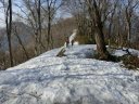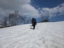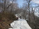 | 【期日】2017年4月29日(前夜泊) 【メンバー】CL M/S(会員外) S/N M/S 【コースタイム】5:15仏岩ポケットパーク→5:45吾妻耶山分岐→6:40鉄塔→10:10三岩山→10:40阿能川岳→ 12:30鍋クウシ山→14:20仏岩ポケットパーク 【コメント】残雪期しか行けない山に行ってきた。 連休初日の渋滞を避ける目的と当日の天気が昼から非常に不安定になる予報からなるべく早立ちしようと思い、前日は水上の道の駅に泊まった。 雪の状態や道の様子をみながらルートを捜しながら登り、けっこう長くハードな山行となった。 笹薮漕ぎやシャクナゲ漕ぎをしながら尾根道を歩いたり、雪渓を歩いたりした。 又三岩山では少しスリリングな岩場もあり、変化に富んでいた。 天気予報通り10時くらいから黒っぽい雲が西の方から湧き出て、山頂滞在時間5分で急ぎ下山する。 途中でパラパラと小雨が降ったがカッパを着たり脱いだりして、とにかく急いだ。 駐車場に着くと同時に、ものすごい雷と大粒の雨が降ってきて本当にラッキーだった。 途中、鈴森の湯という日帰り温泉に寄ったが、車から出られないほどの豪雨になり一時は霙まで降ってきたのにはビックリした。 コメントM/S |