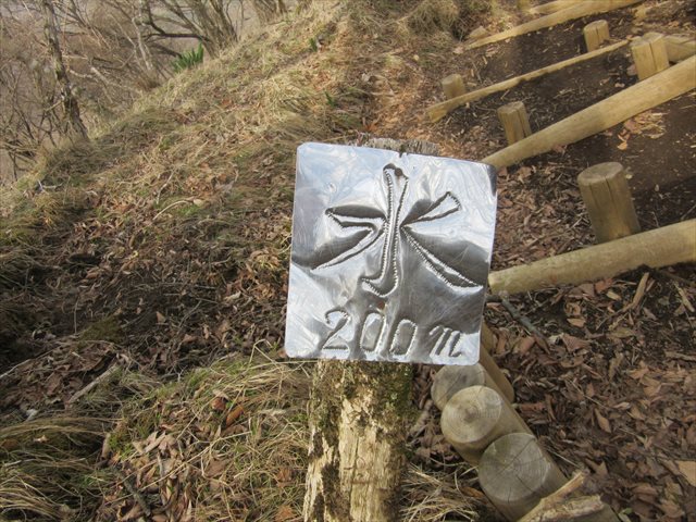 水場まで200m下る、親切な看板