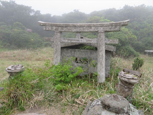 不動池にある祠と鳥居。ここにはバイオ式トイレがあります。残念ながら天気悪化。