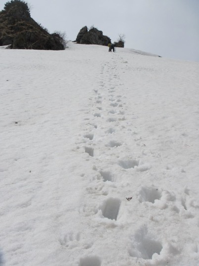 29この雪壁をのぼって中天狗に、下りもクライムダウン