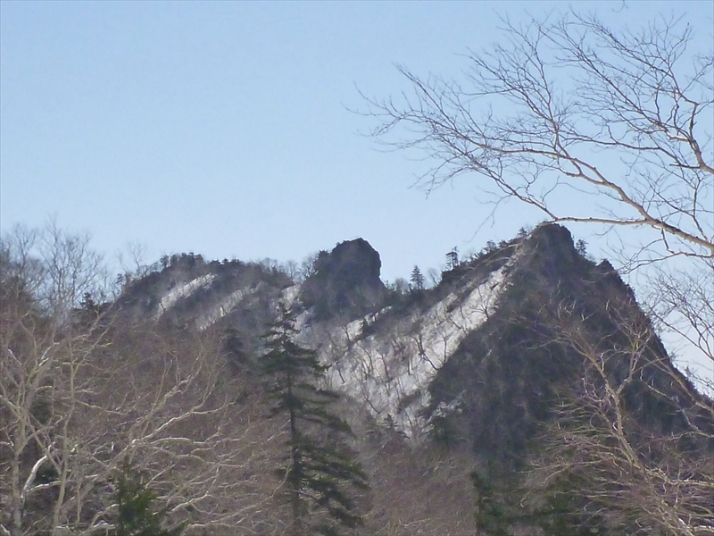 37槇柏山の頂上稜線の真ん中に岩山が、どこを登るか