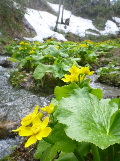 43作業道と合流した沢にエゾノリュウキンカ