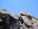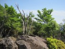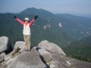 | 【 期 日 】 2017年5月29日(月)〜30日(火) 【メンバー】 L:TY、TY 【コースタイム】 5/29 大崩山(おおくえ:1643.3m)登山口6:00〜大崩山荘6:50〜ワク塚分岐7:15〜袖ダキ展望所9:20〜 坊主尾根コース分岐11:00〜分岐11:40〜三差路13:15〜13:30大崩山〜三差路〜 小積ダキ15:10〜大崩山荘17:30〜18:00大崩登山口 5/30 尾鈴山登山口9:40〜5合目10:40〜尾鈴山山頂12:10〜14:20登山口 【コメント】 天気良好、20年来恋こがれていた、大崩山(おおくえ:1643.3m)に行って来た。 登山口に案内版があり、右斜面を登ると大崩山荘に到着した。川を無事徒渉し、大きな岩の間を通過、 不安定な梯子を登ると袖ダキに到着、クサリやロープもないスラブをよじ登ると、岩峰と岸壁の絶景が待っていた。 そして下ワク塚、中ワク塚の岩峰を楽しみながら歩いた。 その後山頂へ。展望はあまりなかったので、カメラに納まり坊主尾根を下山した。 上ワク塚、中ワク塚等、登りに通過した岩峰を見ながらの下山、安定しないハシゴがたくさんあった。 象岩下のトラバースは、ワイヤーを伝いながら緊張の連続で、慎重に通過、そして、長いルートの後に徒渉をして、 登山口に到着した時は、嬉しさがこみあげてきた。 5月30日尾鈴山へのハイキング。 本丸太の階段状の道を緑を楽しみながら歩く。頂上には、一等三角点がありタッチした。 気持ちの良いハイキングであった。 TY記 |