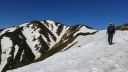 | 【期 日】 2017年6月4日〜6日 【メンバー】 S.A T.S(会員外) 【コースタイム】 5日・・古寺鉱泉7:30―9:05一服清水―10:50古寺山―11:30小朝日岳直下で昼飯11:50― 銀玉水―13:55大朝日岳山頂避難小屋(泊) 6日・・大朝日岳まで往復後、小屋発6:40―8:25小朝日岳―9:55 鳥原山―12:35古寺鉱泉 【コメント】 毎年6月恒例のS氏との東北山行を決行した。昨年の早池峰山に続きスキー山行ではなく、月山に行くたびに左に見え る気になっていた山、朝日連峰への登山靴での山登りである。車利用のため縦走ではなく、古寺鉱泉に一泊してからの 大朝日岳への 山小屋泊り往復登山とした(下山は鳥原山経由)。 4日:午前中、山形県東根市さくらんぼマラソン( 10`)を走り、夕方 古寺温泉着、小屋のご主人の明快な説明を受けて薪で沸かした秘湯に浸り、 朝陽館での岩魚・山 菜料理と山形の銘酒をたっぷりと味わって就寝した。 5日:天気良く、予定通りの時間で途中の水場、一服清水と銀玉 水で補給 し朝日岳山頂避難小屋に到着する。 今年の積雪量は平年並み、ただし連日気温が低くなかなか雪が融けな い ようで途中雪渓が残っているところもあったが、かえって気持ちが良く 景色もよく見えた。 小屋近くの最後の水場「銀 玉水」は雪渓の下の斜面に管が埋め込まれて いて、既に雪渓の脇が掘り起こされ取水できるようになっている。 冷たく 美味い水で、ここで小屋で使用する水をたっぷりと補給した。 水場の上の雪渓は急で両脇に落ちないようにまっすぐル ートを取るが、 場合によってはアイゼンがほしいところであろう。 特に小屋泊り往復登山での朝の下りは要注意である 。 山頂付近から小屋にかけてはガスがかかっていたものの、快適な小屋に 入って一杯やっていると、ガスが取れ素晴 らしい夕焼けを見ることが出来た。 6日:無風快晴、まれにみる言い尽くしがたいほどの日の出を迎える。 良く寝れた ものの朝方の冷え込みは相当なものであった。 早速、朝食前に15分程で大朝日岳山頂に立ち飯豊山・磐梯山・月山・ 鳥海山・つらなる朝日連峰・日本海など360度の展望を堪能し小屋に戻り ラーメン朝食を済ませ下山にかかった。 小朝 日岳の登り返しに25分程、ここで古寺鉱泉から登ってきたピストン 組の2人に出会った。一日での往復はちょっときつい かな、である。小朝日岳からは鳥原山経由で尾根を下るが、下り口が崩壊していて要注 意、尾根上に雪が残っていてト ラバースに気を使ったのと、鳥原湿原で雪 渓の下に隠れている道が分からず、スマフォGPSで位置を確かめて昼過ぎ に古寺鉱泉に到着した。 (S./A記) |