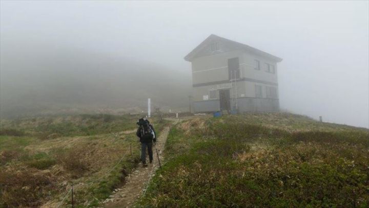 大朝日岳山頂避難小屋に到着です