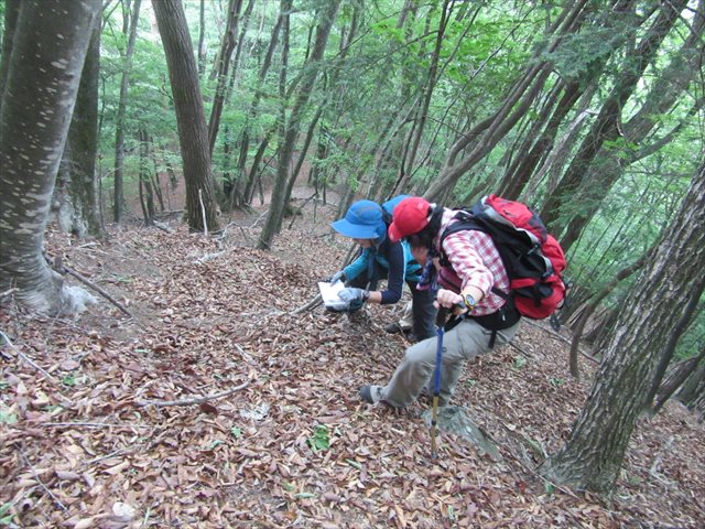急斜面で地図読み