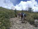 | 【期日】 2017年6月9日(金)〜10(土) 【メンバー】 CL Y/S K/H S/T M/I S/T S/H 計6名 【コースタイム】 6月9日(金) 根子岳登山口11:02?小根子岳13:19―根子岳頂上13:54― 下山16:22―別荘(泊) 6月10日(土) 菅平高原牧場登山口出発7:57―四阿山頂上11:24―下山15:00 【コメント】 レンゲツツジを見ながら登山をするということで、Hさんの車で出かけた。峰の原高原にある渋谷区の施設に車を停めさ せてもらって、登山を開始した。牧場を右に見ながら、でこぼこの石ころだらけの歩きにくい道を進んだ。お目当てのレン ゲツツジは満開とまではいかなかったが、それでもずっと咲いていて、きれいだった。何しろ天気が良くて、空はどこまで も青く、夏のような雲が湧き出ていて、眺めも最高だった。小根子岳にも寄り、頂上に無事についた。菅平のスキー場が 眼下に広がり、北アルプスも眺められた。帰りは、同じ道を下山した。ずっと下って牧場あたりからワラビが見えだしたの で、ワラビ取りをした。小さい柔らかそうなものだけを取ったが、結構な収穫だった。久しぶりに山菜取りを楽しむことがで きた。峰の原の別荘に着き、ワラビをゆでておひたしにし、混ぜご飯、豚汁、ローストビーフ、煮卵、ピーマンの肉詰め、 かぼちゃの煮つけ、などのごちそうが並び、6人で食べた。10日は、菅平高原牧場の駐車場に車を停め、そこから登山を 開始した。昨日よりは歩きやすい道だった。レンゲツツジもたくさん咲いていた。昨日の根子岳よりは歩く距離が長かった が、それでも無事にたどり着くことができた。同じ道を下山した。牧場でソフトクリームを食べ、別荘に寄って荷物を積み 込み、小布施の「穴観音の湯」で汗を流し、帰ってきた。新座は夏の暑さだったそうだが、菅平は高原の爽やかさだった。 Y/S記 |
