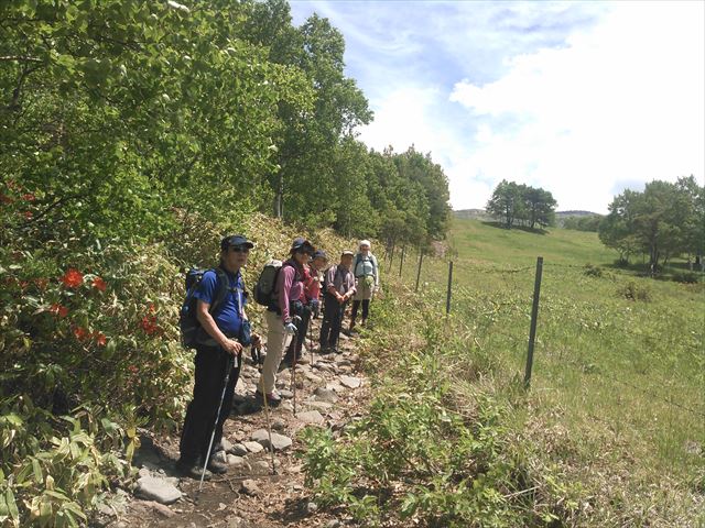 右に牧場を見ながら、根子岳を目ざします