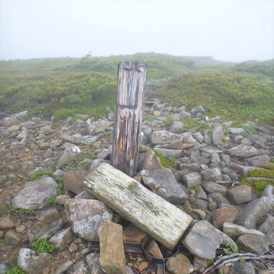 円山山頂、山名板も褪せて
