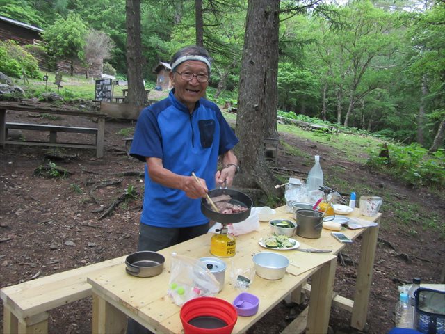 Kさんも肉焼いてます
