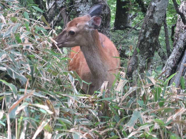 近寄っても笹を食べるのに夢中、今回出逢ったのは人間1人と鹿1頭