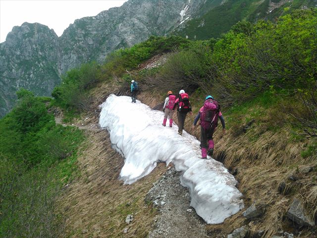 時々雪渓が出てきます