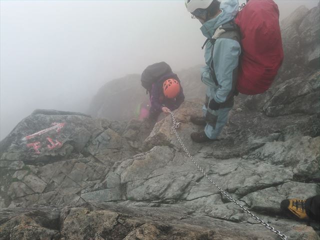 鎖をしっかりつかみ、一人ずつ下ります。緊張の連続です