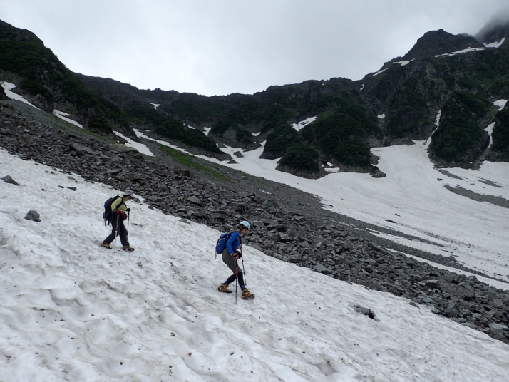 雪渓を歩く練習をしたり