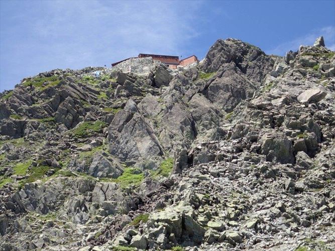 北穂小屋まで登りますが、ここが一番危ない