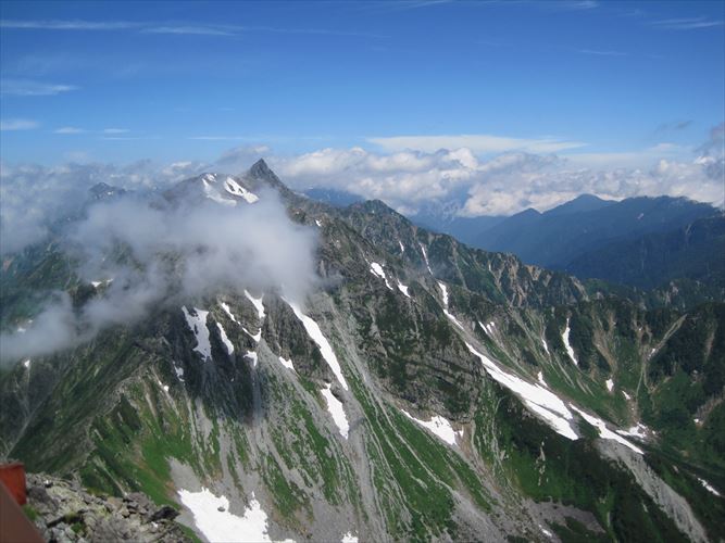 南稜班・北穂高小屋テラスより槍ケ岳から北穂高岳への稜線