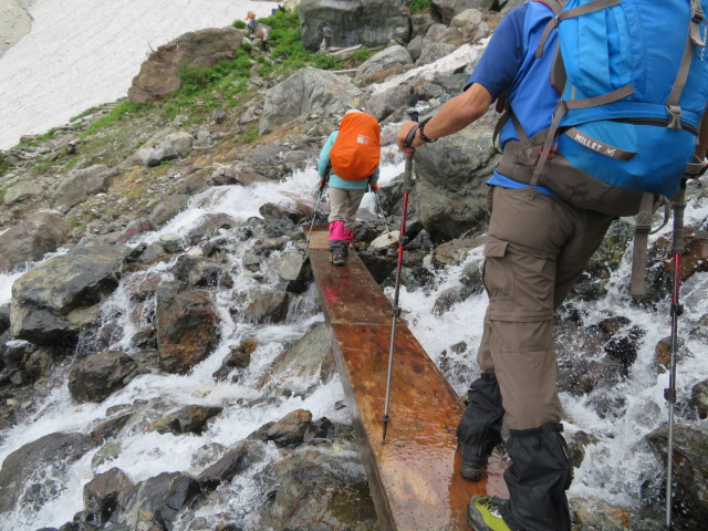 この橋が怖い!濡れています、気を付けて・・・