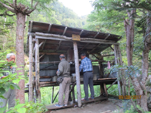小屋の水場、豊富な水、外トイレもバイオトイレになっていました