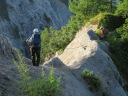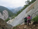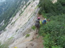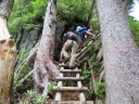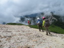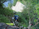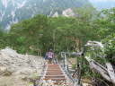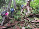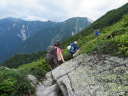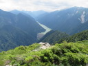 | 【期日】2017年8月10日(木曜日)〜12日(土曜日) 前夜発 【メンバー】 CL:M/K SL:M/I J/K I/K H/S 【コースタイム】 8/10((木) 七倉岳・船窪小屋登山口発6:40⇒唐沢のぞき8:25⇒鼻突八丁10:42⇒天狗の庭12:25〜35⇒船窪小屋到着13:35 (小屋で手続きをしてから七倉岳を登る)―船窪小屋発14:00⇒七倉岳14:22〜32⇒水場15:05 小屋に戻る (泊) 8/11(金) 船窪小屋出発4:40⇒船窪乗越5:37⇒船窪岳山頂6:02〜12⇒船窪岳2,459峰7:35〜45⇒不動沢岳着11:10⇒南沢岳13:30〜45⇒山頂分岐⇒烏帽子岳着15:27⇒((烏帽子岳を往復)⇒烏帽子小屋着16:40 (泊) 8/12(土) 烏帽子小屋発5:00⇒2,208m(ブナ立尾根)6:10⇒権太落シ7:54⇒高瀬ダム着8:52⇒トンネルを抜ける9:25⇒予約のタクシーに乗って七倉山荘に戻る9:50 七倉山荘でお風呂、食事をして帰る 【コメント】 「ランプの山小屋」と知られる北アルプス船窪小屋。電気も冷蔵庫もないがおもてなしの料理は実に美味しいらしい。小屋の歴史や囲炉裏を囲んでの様子が、何度もテレビや本で紹介されていた。私もいつか行きたい!いつか泊まってみたい!小屋のお父さんとお母さんに会ってみたい!と、何年も前からそう思っていたが、何処から入山しても大変そうで、調べれば調べるほど道は険しく、今にも崩壊しそうな所を数回も通過しなければならないようだ。落ちたら一巻の終わりという・・・。考えただけでも怖く、誰誘うこともできず、何となく秘めていた山だった。 しかし願いはいつか叶うもの!だ・・・。昨年夏のこと、目の前に「船窪小屋」と書いてあるTシャツを着たJ子さんがいるではないか!驚いた。「行って来たのですか?私も行ってみたい」と話し掛けると、ためらいもなく「又行ってもいい、行きましょう」との返事。目の前がパッと明るくなった気分だった。 あれから一年・・・、ついにこの日がやってきた!7月22日、たまたま付けたテレビが山小屋をライブで紹介していた。船窪小屋も放映していた。小屋を60年以上営んできたお父さんお母さんは既に80歳を超え、この日を最後に引退とのことだった。あと数日早かったら・・・、会えたのに・・・、残念だ。でも、それでもいい。やはり嬉しかった。 ◆8/10 七倉山荘〜船窪小屋 昨夜は国道沿いにある道の駅「安曇野松川」で一夜を明かした。不安と期待が入り混じり寝られそうになかったが、車の騒音が逆に心を落ち着かせ、いつしか眠りに着いた。 4時半起床。今日はいい天気だ。道の駅で朝食を済ませ、車で40分くらいの七倉山荘に向かった。駐車場は予想以上の数の車が止まっていた。胸が高鳴る。 船窪新道は思ったより整備され歩きやすかった。途中から梯子の連続だが、足元さえ気を付ければ危険はない。最初から急登が続く。汗が流れる。しかも暑い・・・。樹林帯では木々の隙間から唐沢岳と燕岳がよく見えた。2年前の夏、あの山を4人の仲間と縦走した思い出がある。燕岳行く途中は物凄いお花畑、そしてコマクサが一面咲いていた。厳しいがいい山だった・・・。今日は槍は見えない。 森林限界を抜けた天狗ノ庭から船窪小屋までは、展望とお花の道。 船窪小屋に到着。嬉しくて涙が出た。針ノ木岳の雪渓から登ってくる登山者のほうが多いのだろうか?すでにビールを飲み、くつろいでいる人が大勢いた。出迎えのお茶を早々に飲み、今宵寝る場所を確認してから七倉岳を登った。その後「日本一危険な水場」と聞く水場に向かった。途中テン場があった。そのテン場に元会員のYさんがいた。驚いた。女一人、しかもテントを背負い、雪渓を登って、ここにいるとは・・・すごい! 水場は梯子を下り、ヌルヌルしたガレ場、さらにザレ場を下り、落ちたらどこまで落ちるのかとゾッとするような所にあった。一本の水を汲むのにも命がけのようだ。「覗くのも一見の価値あり」 17時から夕食と聞き、外で急いでビールを飲んだ。疲れた体と胃袋に沁み込むような旨さだった。夕食も美味しかった。ランプの下で19時からDVDを上映し、小屋の歴史を見せてくれた。新聞社の取材も来ていた。新しい小屋のご主人の挨拶もあった。お父さんお母さんが引退され、新・船窪小屋はスタートしたようだが、今後に期待していきたいと思う。 ◆8/11 船窪小屋〜船窪岳〜不動岳〜南沢岳〜烏帽子岳 4時半出発。ヘルメットをしっかり被る。森林限界を登ったり下ったり、いい意味飽きないが気は抜けない。花も展望もあるが、スリルもあり、アップダウンも多く大変だった。崩壊地の通過が怖い。落ちたらおしまいだろう・・・。整備されてはいても、怖かった。いつしか船窪岳は崩壊で無くなってしまうのだろうか・・・。Kリーダーからの「慎重に!!集中して!!」というセリフを何度聞いただろう。そのくらい大変な危険なところが多かった。 不動岳からはこれまでの雰囲気とガラりと変わり、砂礫の道が多くなる。不動岳から一旦下り南沢岳へと登るが、ここも滑りそうな所が数ヶ所もあり、気が抜けない・・・。 南沢岳の展望は実に素晴らしかった。薬師岳や赤牛岳がドー