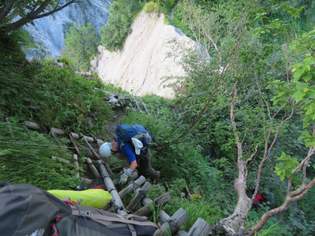 急な梯子と鎖場を延々と下ります・・・。注意・注意!