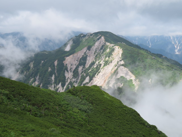 これより南沢岳に・・・。崩落と森林の堺に登山道があります。怖そうです