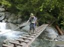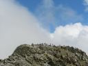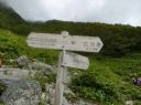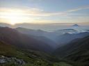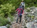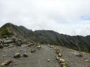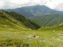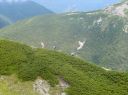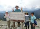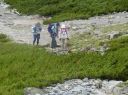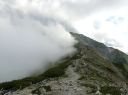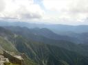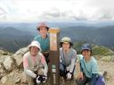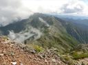 【山 域】 南アルプス 北岳 3193m 中白根山 3055m 間ノ岳 3190m 西農鳥岳 3051m 農鳥岳 3026m 【期 日】 2017年8月19日(土)〜21日(月) 【メンバー】 L:K.O T.Y、M.S、C.K 【コースタイム】 19日(土) 新宿 22:00前夜発 〜 (山梨交通 南アルプス登山者用直行バス) 〜 6:13 広河原 7:00 〜 白根御池小屋分岐 7:40 〜 (大樺沢) 〜 9:40 大樺沢二俣 10:00 〜 (右俣コース) 〜 小太郎尾根分岐 12:20 〜 12:50 北岳肩ノ小屋 13:20 〜 14:10 北岳山頂 14:30 〜 15:30 北岳山荘(泊) 20日(日) 北岳山荘 5:00 〜 5:45中白根山(朝食)6:10 〜 7:15 間ノ岳 7:30 〜 8:50 農鳥小屋 9:10 〜 9:55 西農鳥岳 10:10 〜 10:50 農鳥岳 11:05 〜 11:30 大門沢下降点 11:45 〜 (昼食) 〜 15:15 大門沢小屋(泊) 21日(月) 大門沢小屋 6:10 〜 登山道入り口 8:50 〜 ゲート 9:05 〜 9:30 奈良田 奈良田13:50発のバスに乗車、身延線下部温泉駅、甲府を経て帰宅 【コメント】 19日(土) 曇りのち晴れ T.Y以外の三人は、新宿前夜発登山者用バスで広河原へ。途中、天恵泉白根桃源 天笑閣の大広間で 仮眠。仮眠があったので楽でした。広河原山荘に宿泊したT.Yと合流し、大樺沢を進みます。前日に 雨がかなり降ったそうで、登山道は所々沢のようです。 大樺沢二俣からは右俣コースをとり、小太郎尾根を目指します。厚かった雲も次第に薄くなり、 富士山も顔を出します。途中にマルバダケブキ(丸葉岳蕗)が群生していて、きれいでした。 肩ノ小屋で昼食をとり、日本第二の高峰、北岳を目指します。50分ほどで北岳に到着、雲がやや 多めながら、周りの山々を見渡すことができました。 北岳を後に北岳山荘へ。小屋の先に続く間ノ岳への道を見た時は、明日あそこを歩くのだと胸が 高鳴ります。北岳山荘では、屋根裏のような部屋でしたが、週末にも拘らず、一人に布団一枚で良かった です。天気予報がずっと悪かったので、登る人も少なかったのでしょう。それでも、そこそこ混んでいた ようで、夕食はカレーでした。カレーも美味しかったですが、漬物が美味しかったです(夕食がカレー なので、宿泊代が900円安くなりました)。 20日(日)晴れのち曇り いよいよ白峰三山縦走の日です。雲海に浮かぶ富士山、雲海から顔を出す太陽のコントラストが印象的 です。朝日に照らされる仙丈ケ岳、甲斐駒ヶ岳、鳳凰三山、中央アルプス、遠くは北アルプスの槍穂高を 縦走中に見ることができました。 まずは、中白根山に登頂し、ここで朝食をとりました。 続いて間ノ岳へ。山頂からは360度のパノラマが広がり、雲の上の世界を楽しみました。間ノ岳から 北岳へ戻る人が多く、ここから先は人が少なくなります。 間ノ岳を後にし、農鳥小屋に到着。ここで飲み物とピンパッチを買いました。有名人のおじさんとの 記念写真もばっちりです。 稜線歩きと言ってもかなり起伏はあるのですね、西農鳥岳へはごろごろした岩場が続きます。 西農鳥岳の山頂は、我々の他には1グループしかおらず、ちょっと寂しかった気がします。 最後は農鳥岳。時間も11時になると雲が上がってきて曇ってきました。天気が悪くなると出てくるのが、 雷鳥。大門沢下降点への途中で、雷鳥の親子がでてきました。草の中に見え隠れしている子供もかなり 大きくなっていました。 岩とハイマツの道を歩いて、大門沢下降点に到着。ここの鉄塔は、遭難した若者のご両親が建てられた ものだったのですね。ご冥福をお祈りしました。 聞いていた通り、大門沢の下りはかなり急で、疲れました。広場になっているところで、昼食をとり、 更に下っていくと、壊れかけた橋が出てきたと思ったら、次は本当に壊れた橋は出てくるわで、スリルに 富んだ道でした。大門沢小屋に無事に到着し、充実した一日も終わりを迎えました。 21日(月)晴れ この日は奈良田に下山するだけなので、ゆっくり出発します。橋はいくつも出てくるし、急坂を下るしで、 地図を見て予想していたものと随分違いました。最初の吊り橋(発電所取水口)まで下りると人里が近く なった気がしました。 奈良田9:50発の町営バスにも乗れたのですが、ゆっくりお風呂に入って、次の13:50発のバスで 帰ります。(4時間も間があくのです)。町営の「女帝の湯」は勿体ないくらい勢いよく源泉掛け流し、 ぬるっとしたいいお湯でした。さっぱりした後は、食堂で早めのお昼。山梨といえばほうとう、 川といえば岩魚で、ほうとうと岩魚の塩焼きを頼みます。女性陣はしっかりビールも楽しみました。 食後は、近くの古民家カフェでケーキセット。お洒落な古民家に美味しいケーキをいただき、バスの 待ち時間を持て余すこともありませんでした。 (K.O) |