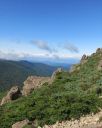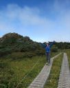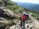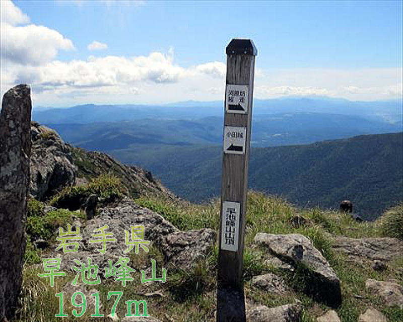 【山 域】 岩手県 早池峰山 1,917m 【期 日】 2017年9月4日(月) 【メンバー】 L:Y.F (会員外) K.A 【コメント】 岩手の実家にはたびたび里帰りしていますが、何かと雑用が多く、山に囲まれているにもかかわらず 高校卒業以来登ることはありませんでした。高校時代からの友人で、唯一登山を続けているY.Fさんから 「いつか一緒に山に行こうよ〜」と誘われていたので、今回の帰省の折に登る計画をたてました。 最初、岩手山に、と思いましたが、計画してもいつも天気が悪くて行けなかった早池峰山に決定! 私は初めてですが、友人は何度も登った経験があるので安心でした。 小田越登山口前には山荘があり、無人販売で携帯トイレ(400円)が売られています。この山は携帯 トイレがほぼ義務化されていて、トイレブースは登山口を入ってすぐの所と山頂の避難小屋にあります。 また、登山口には使用済みトイレ回収ボックスもありました。(良心的ですね〜) 登山道は最初樹林帯で、ギザギザの滑りにくい木道が続きます。少し行くと、熊よけの一斗缶が吊る してあり、大勢の人が叩いたのか缶はデコボコでした。私達も叩いて進みます。(熊さん、現れないでね!) 1合目までは樹林帯、その後岩場になり、そこから山頂までず〜っと吹きさらしの岩だらけの登山道です。 花の山として有名なだけあって、道の両側にはロープが張ってあり進入できません。もう9月なので花は あまりないだろうな〜、と少し諦めていたのですが、まだありました!最初に目に入ってきた花は、 有名な「ハヤチネウスユキソウ」そっくりの花でした。7月下旬に咲くはずなのにおかしいな〜と思いま したが、後で調べたら「ミネウスユキソウ」でした。この山固有種の「ナンブトラノオ」、「ナンブトウ ウチソウ」もあちこちに咲いていて、目を楽しませてくれました。さらに、終わったはずの「ハヤチネ ウスユキソウ」ですが、根性のある?花が幾つか残っていてくれて、写真に収めることができました。 5合目に、休憩するのにちょうどいいベンチのある場所があり、そこで休憩。シーズン中は監視員の人が そこに座ってマナー違反者がいないかどうか見張っているそうですが、この時期にはいませんでした。 どんどん登っていくと、友人が「見て!海が見えるよ!」と言うので、右下後方を見ると、三陸の宮古の 海がうっすらと見えて、感動〜!今日のようによく晴れた日じゃないと見られないそうです。ラッキー! でした。この辺りはすごい強風で、体重には自信のある(?)私でも何度も飛ばされそうになりました。 山頂近くまでくるとハシゴが2か所あり、それを上ると平らな場所に出ます。「あー、やっと緑地帯が ある〜」とホッとしました。そこには、やはりギザギザのきれいな木道が敷かれていました。山頂の赤い 避難小屋も間近に見えます。岩場を少し登り、避難小屋の裏に山頂がありました。 山頂には早池峰神社が祀られていて、剣がたくさん刺さっています。ここでお参りを済ませ、記念撮影。 あんなに風が強かったのに、山頂ではほとんど風がなく、岩陰でお弁当タイム。山頂からは岩手山が 見えるとのことでしたが、この日は残念ながら見えませんでした。でも、海が見えたから○としましょう! 下山では、登っている時には気付かなかった花が目に入り、写真もたくさん撮りました。今回は友人との のんびり登山でしたが、天気も良く、眺めも良く、最高の日になりました。故郷にこんな素晴らしい山が あることに、ちょっと誇らしい気分にもなれた今回の山行でした。(来年の夏は岩手山かなぁ〜) K.A 記 |