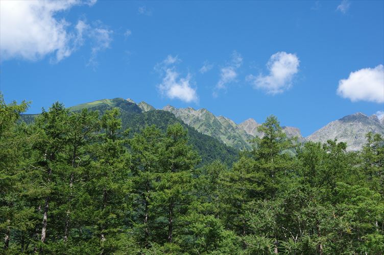 上高地から西穂高岳の稜線を展望
