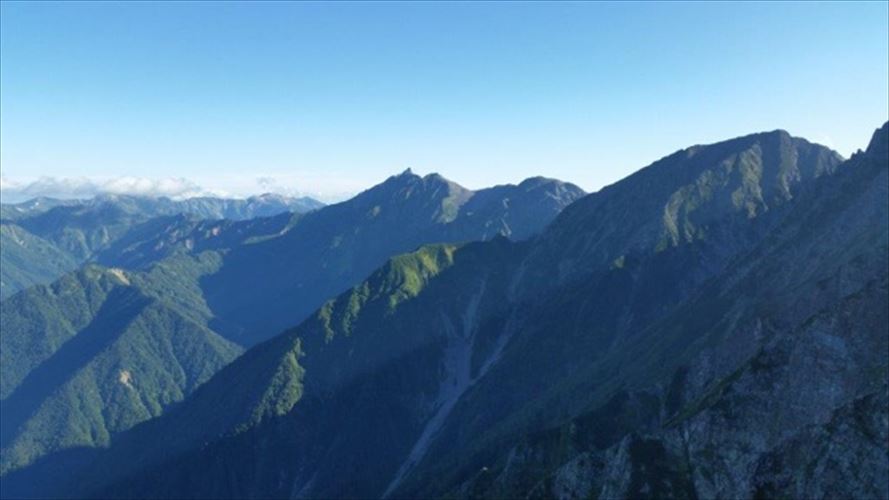 西穂山頂からの展望 3/4、槍・穂高の稜線