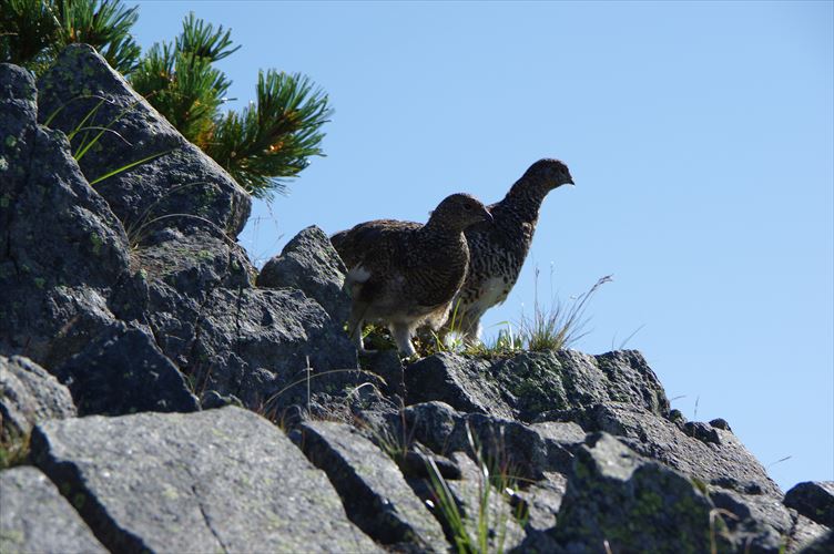 小春日和の下、雷鳥のペアが冬支度の準備