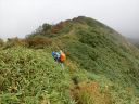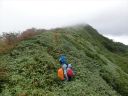 【期 日】 2017年9月14日(木)〜15日(金) 【メンバー】 CL Y.S 会員外3名 【コースタイム】 14日 柳瀬川駅出発11:00−自家用車−野反湖駐車所着15:30− 野反湖周辺の散策−テント泊 15日 野反湖駐車場出発5:50−地蔵峠6:41−堂岩山8:51−分岐9:02−白砂山10:39− 分岐に戻る12:03−八間山14:13−野反湖駐車場着15:35−柳瀬川駅着19:30 14日 女性4人で、車で出発した。野反湖駐車場に着き、時間があったのでバンガローのあるところまで 散策に行ってきた。バンガローがたくさん建てられていて、小さな村のような感じだった。ウィークデー だったので、泊っている人はいなかった。私たちはトイレのある建物の中にテントを張らせてもらった。 気温は低かったようだが、暖かい一夜を過ごすことができた。トイレ、テーブル、いすまで使わせて もらうことができた。 15日は朝ご飯を食べ、テントを撤収してから、出発した。しばらく歩いていると雨が降り出したので、 合羽を着て歩いた。「今日は晴れの予報なのに」と思いながら登ると、稜線に出た。少しずつ 色づいていて、しかも、霧がどんどん上がって、晴れてきた。白砂山までの道は笹に覆われているが、 その笹が刈ってあり、歩きやすい登山道だった。頂上かと思って登ると、またその向こうに山があり、 5つもの山を越えたら、ようやく頂上に着いた。少し休憩して、もと来た道を分岐まで戻り、昼食にした。 ここから八間山までの長い道のりが待っていた。下りだけかと思いきや、アップダウンも何回もあった。 それでも、その稜線が素晴らしく美しくて、見とれてしまうほどであった。振り返ると、白砂山の私たちが 歩いた稜線が全部眺められ、眺めを堪能しながら歩くことができた。紅葉には少し早かったが、 十分景色を楽しむことができた。ロングだが、良いコースであった。 Y/S記 |