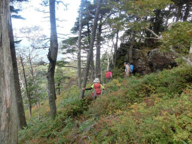 急下降の藪の中・・・、木に捕まりながら・・・