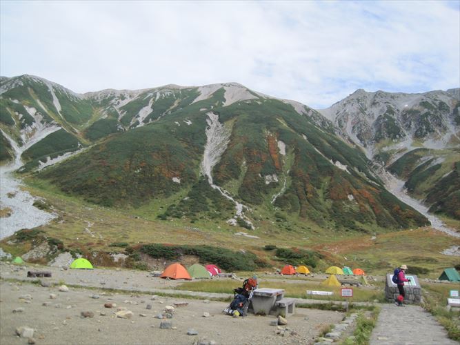 色がつき始めた雷鳥沢キャンプ場に到着しました