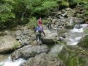 【山 域】 上信越 大源太山(1598m) 七ツ小屋山(1675m) 【期 日】 2017年9月23日(土) 【メンバー】 L:Y.S S.N、K.O、M.M 【コースタイム】大源太山登山口 8:30 〜 丸木橋分岐 8:50 〜 大源太山山頂 11:25 〜 七ツ小屋山 13:10 〜 蓬峠への分岐 13:55 〜 シシゴヤノ頭 14:35 〜 丸木橋分岐 16:15 〜 大源太山登山口 16:30 上越のマッターホルン、大源太山に行ってきました。 関越道は雨。新潟は晴れの天気予報を信じて、走ります。関越トンネルを抜けると、新潟側は、雲が多めながら晴れ、雲も流れているので天気が良くなりそうです。 登山口の駐車場は10台ほど、最後の1台分に停められました。 登山口からは沢沿いを進み、徒渉が2回ありました。両方ともロープは張ってありますが、増水時は危ないと思います。橋はない「丸木橋」の分岐を左に進むと、山頂まで約2時間半です。九十九折りにあまり切っていない登山道で、直登が多く、急な登りが多いように感じました。 山頂は曇りで、残念ながら展望は望めませんでした。なにより、山頂の標識の下に巣があるのか、羽虫が飛び交っていて、凄かったです。写真を撮るのもそこそこに、南側を下ります。北側は普通の山容ですが、南側は岩場を下りるので、こちらから見た山容が「マッターホルン」なのでしょう。ただ、近くから見ると、山頂付近にも木々があるので、「マッターホルン」はちょっと言い過ぎのような気がします。 大源山を下りてしばらく進んだところで昼食をとり、七ツ小屋山に向かいます。藪の背が高く、結構歩きにくい道です。七ツ小屋山の山頂も曇りで、周りは見えません。 ここから、蓬峠への分岐、シシゴヤノ頭までは稜線歩きとなり、天気が良ければ気持ち良いことでしょう。途中に、池塘が2,3個ありました。 シシゴヤノ頭からは樹林帯を下ります。道が濡れているので滑り、気をつけて下ります。水場が一か所ありました。謙信ゆかりの道とあるのですが、Nさんのウン十年前の地図には載っていないので、比較的最近整備されたようです。 「土樽共同浴場